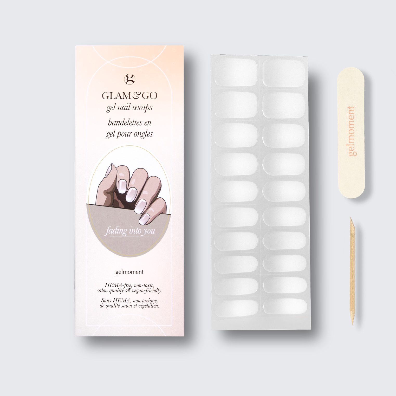 Plus, not only do GLAM & GO gel nail wraps provide the same glossy finish you know and love from our regular gel polish, but they are also HEMA FREE and have a wear time of up to 14+ days.